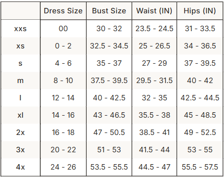 XXS ,XS ,S ,M ,L ,XL ,2X ,3X ,4X |